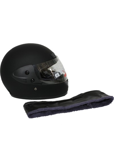 Asm Tam Kapalı Motosiklet Kaskı + Boyun Derili Mat Siyah XL