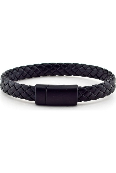 Solfera Siyah Metal Mıknatıslı Örgü Deri Erkek Bileklik